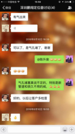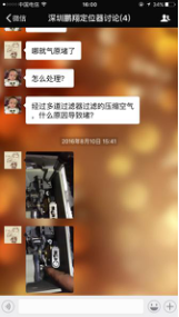 销售的意义就是帮助。余经理第一时间和客户建了一个微信讨论群,群名就叫【深圳鹏翔定位器讨论群】。接着把我们朱厂长拉进了讨论群。朱厂长在听完客户的所有问题陈述后,知道一定是客户的定位器气孔都塞,应该是压缩空气不正常造成的,于是立即给出了非常实操的解决方案。 起初客户认为这个阀门一定是我们的质量有问题,虽说时间过了两年多,但是说自己的管道一直处于停产状态,还没有开始用,认为自己的压缩空气经过多层过滤,非常洁净,不会是管道杂质的问题。很不相信我们的解释和指导。