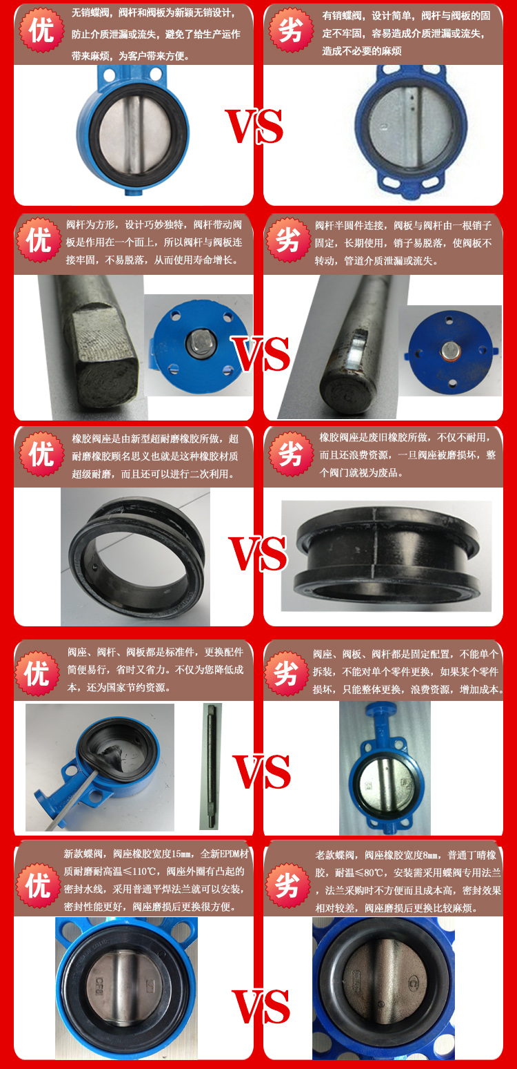 3、橡胶密封圈即可位于阀体上,也可以位于蝶板上,可适用不同特点的介质,供用户选择。