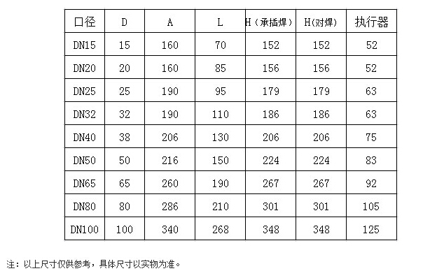 三片式焊接球阀的尺寸如下: