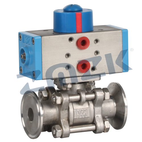 气动三片式内螺纹球阀是由双(单)作用气动活塞式执行器和内螺纹球阀组成。其阀体可分为整体式、二段式、三段式。阀座采用弹性密封结构,密封可靠,启闭轻松。阀杆采用有倒密封的下装式结构,阀腔异常升压时,阀杆不会被冲击。气动活塞式执行器采用低摩擦材料做成轴承套,缸体内外表面经硬质阳极氧化防腐处理,大大提高了气缸的使用寿命。本产品使用性能稳定,广泛的用于石化、冶金、电力等工业部门。