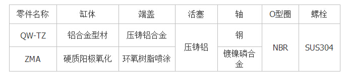 执行器的主要零件材料: