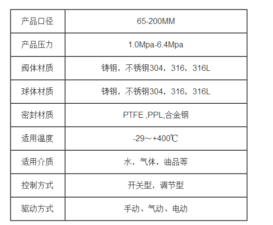 1、阀体参数:口径、工作压力、阀体材质、使用介质、连接形式等参数