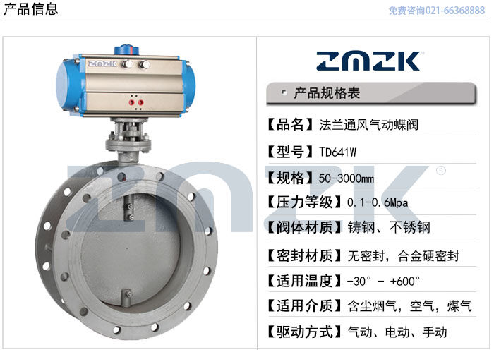 通风法兰气动蝶阀是一种非密闭性气动蝶阀,通风气动蝶阀采用中线式碟板与短结构钢板焊接的新型结构形式设计制造的,结构紧凑、重量轻、便于安装、流阻小、流通量大,避免高温膨胀的影响,操作轻便。气动通风蝶阀内无连杆、螺栓等、工作可靠、使用寿命长。可以多工位安装,不受介质流向影响。气动通风蝶阀是一种非密闭型蝶阀,气动通风蝶阀广泛适用于建材、冶金、矿山、电力等管道上,用以连通、启闭或调节介质量。